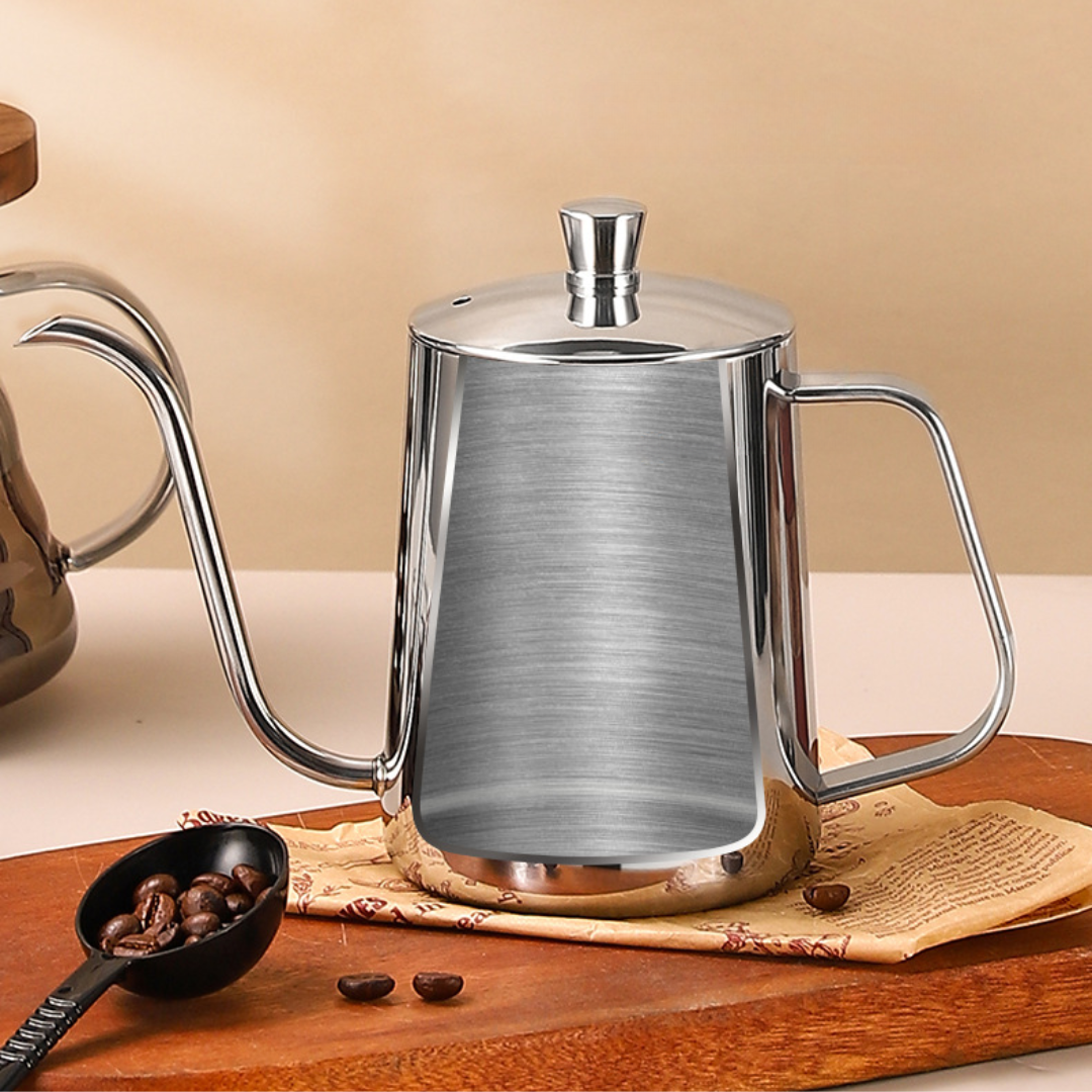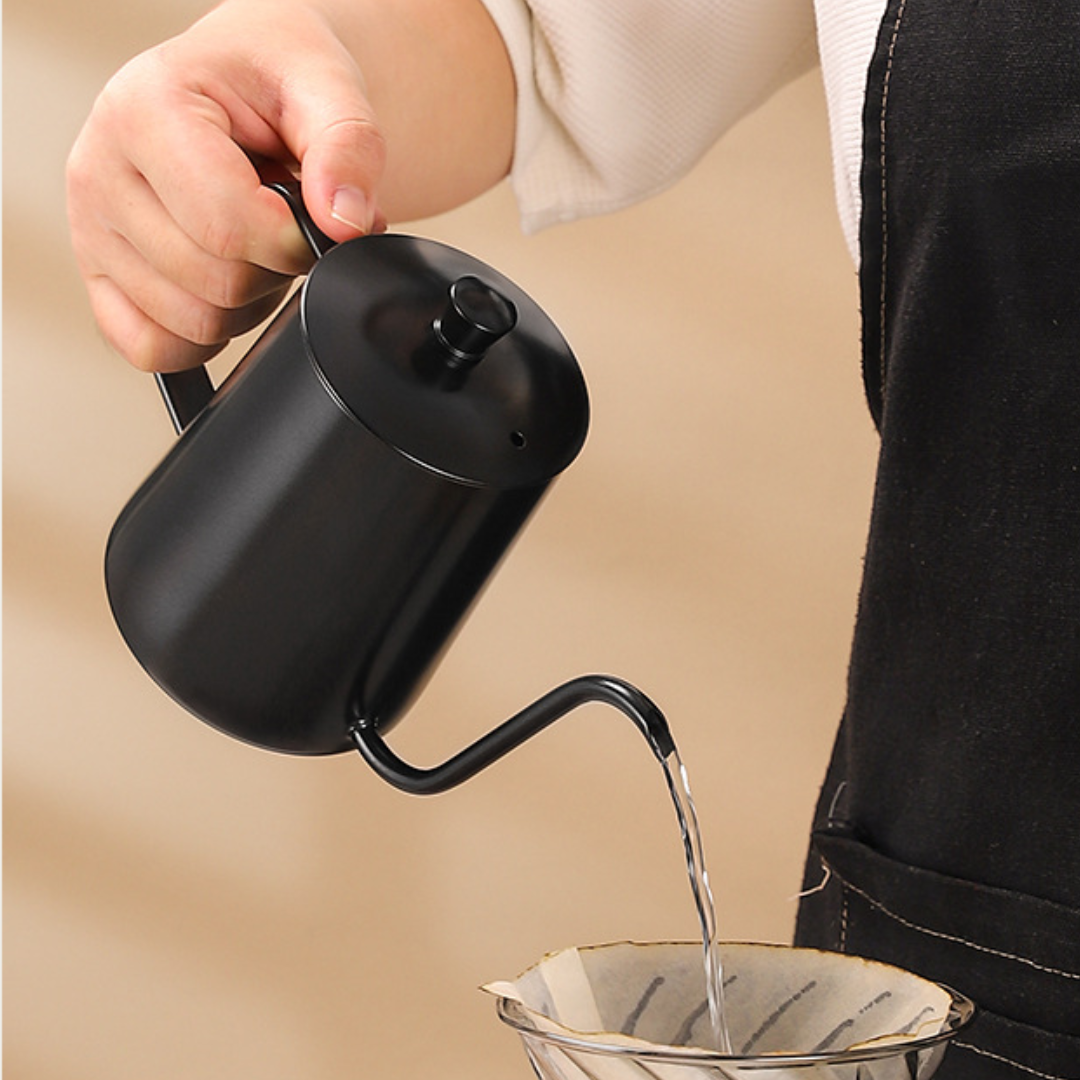 The gooseneck spout is designed to give you complete control over the water flow, allowing you to pour slowly and evenly over coffee grounds. This precision is especially important for pour-over coffee methods (like V60 or Chemex), as it ensures that the water saturates the coffee grounds evenly. This leads to better extraction, enhancing the flavor and aroma of your coffee.